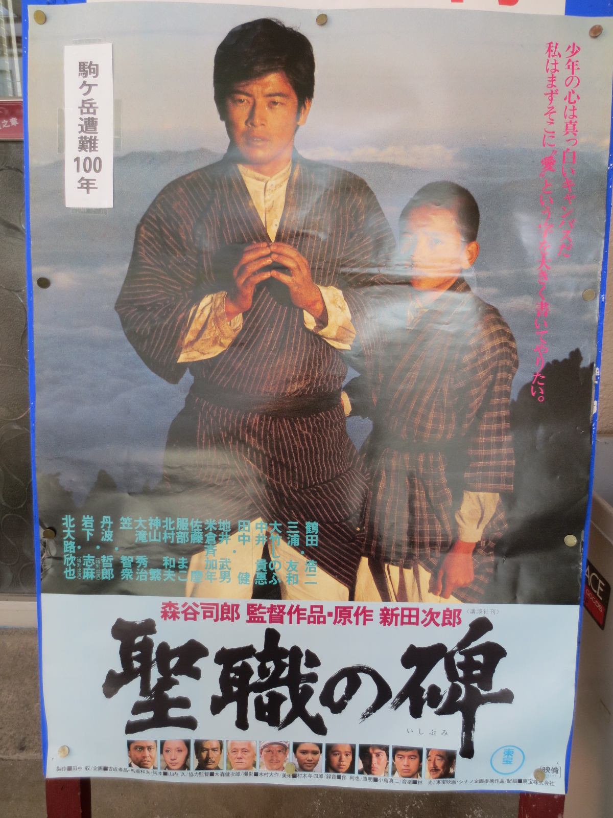 大正2年8月26日中箕輪尋常高等小学校児童10名赤羽長重校長が引率して27日暴風雨に会い終に死す。 その映画が伊那市の旭座で上映中です。 鶴田浩二他有名な俳優さんが豪華出演です。この機会に是非ご覧下さい。 亦、いなっせ4階の上伊那教育会では、この遭難100周年にあわせ展示をしています、貴重な資料が沢山あります。これもご覧下さい。 ご存知、新田次郎著「聖職の碑」です。映画も本のように作られていまして感動的で涙腺が緩みます。 本も読んでほしいですね。