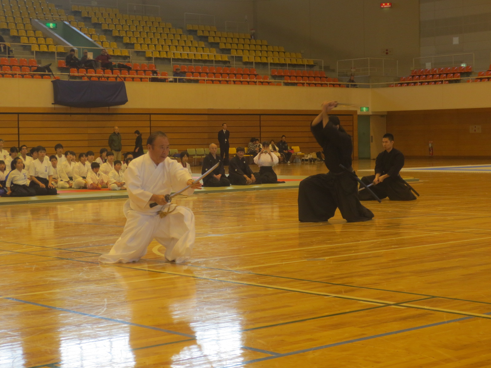 12団体が出場し賑やかく開催されました。柔道 剣道 合気道 空手道 少林寺拳法 日本拳法 薙刀 相撲 銃剣道 テコンドウ 古武道 銃砲などです。 延岡市より、古武道の方々が演武を披露してくださいました。卜伝流の剣法と棒術でした。外国の方が披露してくださいました。 終日武道で賑やかでした。私も久しぶりに武道に堪能いたしました。武道は素晴らしいですね。