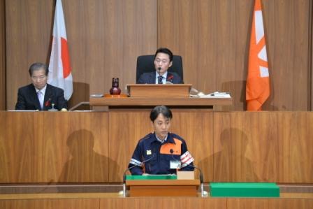 西沢県議は災害対策について・契約に関する条例について・いじめ防止条例など県を質しました。 奥村建設部長より県民の安全安心の為引き続き頑張ると元気な丁寧な答弁がありました。 伊藤教育長からも前向きな答弁がありました。 一般質問終了後、風間議長から所管委員会に付託があり決定、公安委員会委員の選任など可決決定致しました。 その後、議員堤出議案報告があり意見書の採決が22本ありました。 議第17号 集団的自衛権の行使を容認する閣議決定の撤回を求める意見書案は、大田議員から反対討論があり賛成少数否決されました。
