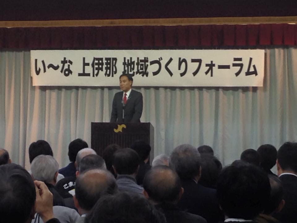 今日10時より、いーな伊那地域フォーラムがあり出席させて戴来ました。上伊那移動知事室最後の行事阿部知事が出席し挨拶致しました。