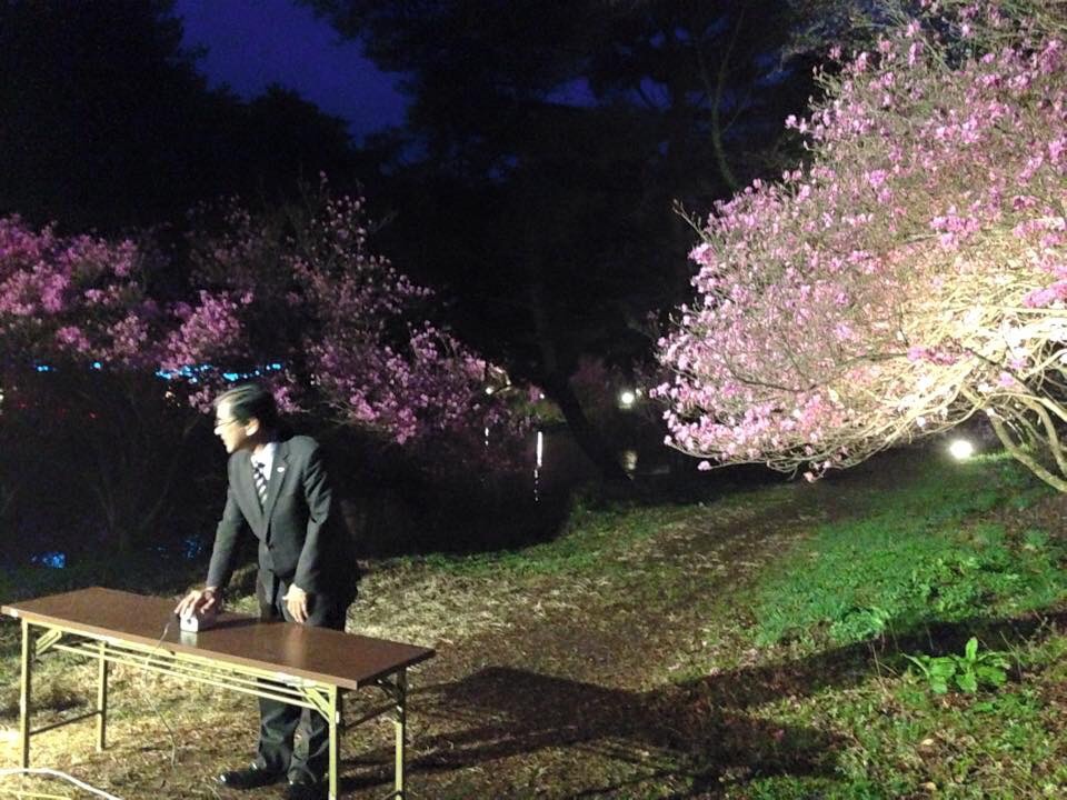 私が挨拶をさせて戴いて、堀内副市長が点灯して戴きました。 ここは、桜と三つ葉ツツジが有名で咲き誇っています。 また、堤と中央アルプスとが素晴らしいビュースポットでも有ります。 是非必見して下さいね。