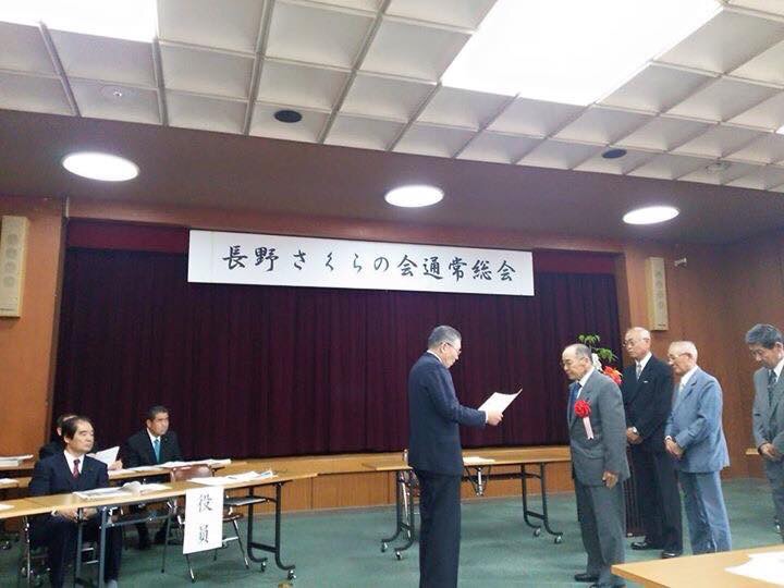 小林会長の挨拶より始まり議案総ては承認されました。役員改選がありほとんど再任され新たに山岸理事が誕生致しました。 表彰も2件あり諏訪市の立石さくら広場を管理されています「立石町桜花会」そして安曇野市の「光城山1,000人Sakuraプロジェクト」様が表彰されました。 来賓挨拶では、吉田博美参議院議員国体委員長が会の趣旨から発足までの間話などされました。その後、林務部長が知事代理の挨拶をして戴きました。