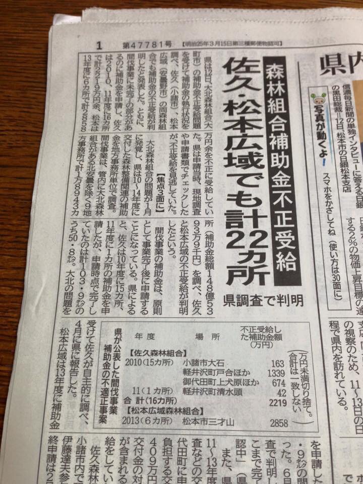 昨日よりニユースで大北森林組合関連で、ほか2ヶ所の森林組合で捕縄金の不正受給が発覚いたしました。