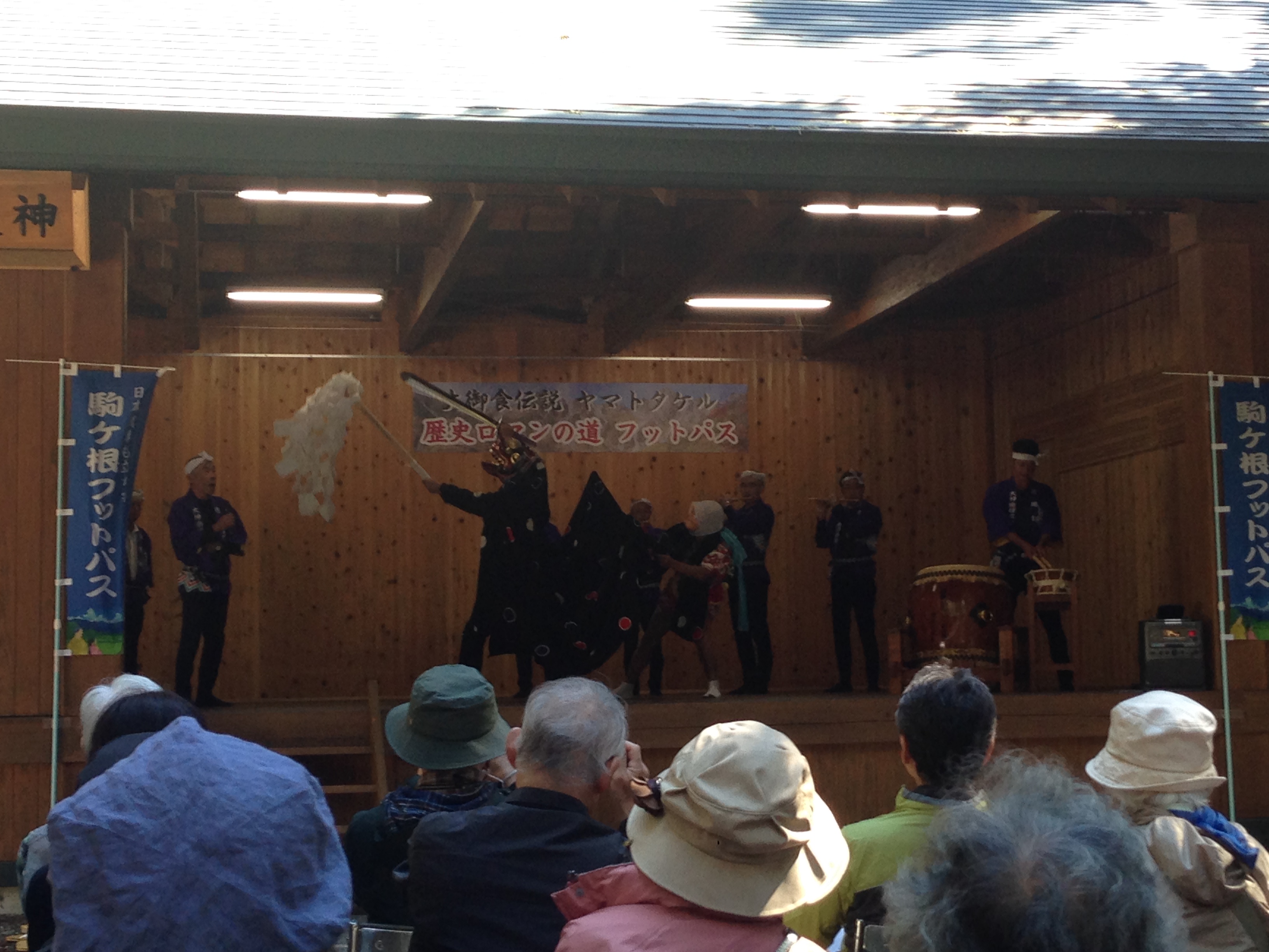 途中休憩時に地域の方々がおもてなしをして下さいました。 午前中最終は、大御食神社でした。獅子舞、よさこいソーラン、ミネハハさんのヒーリングボイスなど聞きながら大御食カレーで昼食でした。