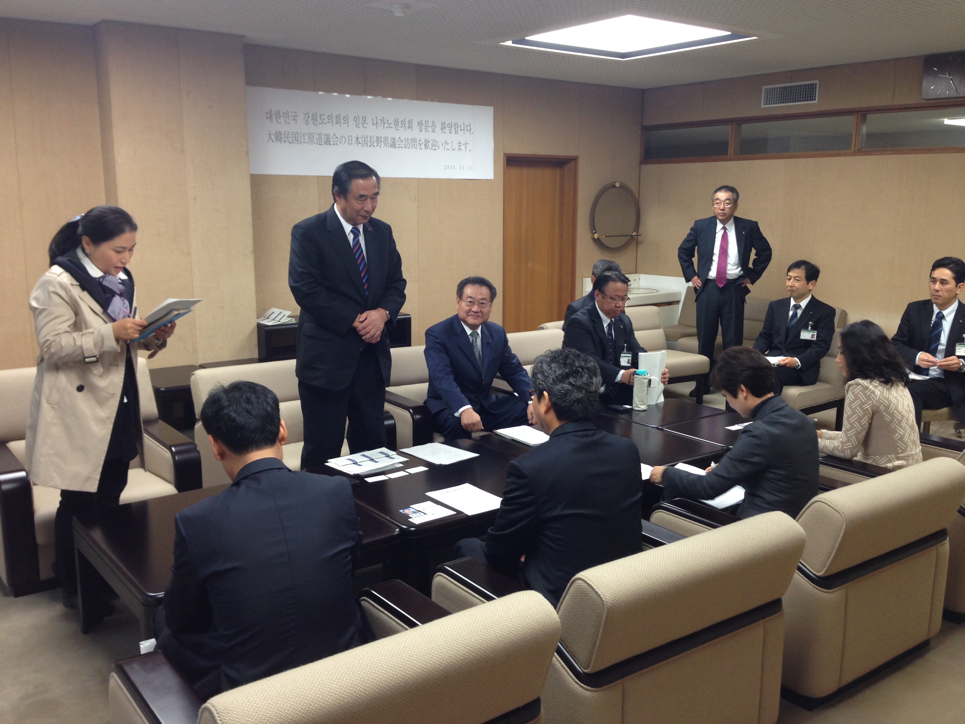 17日10時半から江原道議会事務局さん達は、長野県議会議長を訪問致しました。小島副議長が受けました。