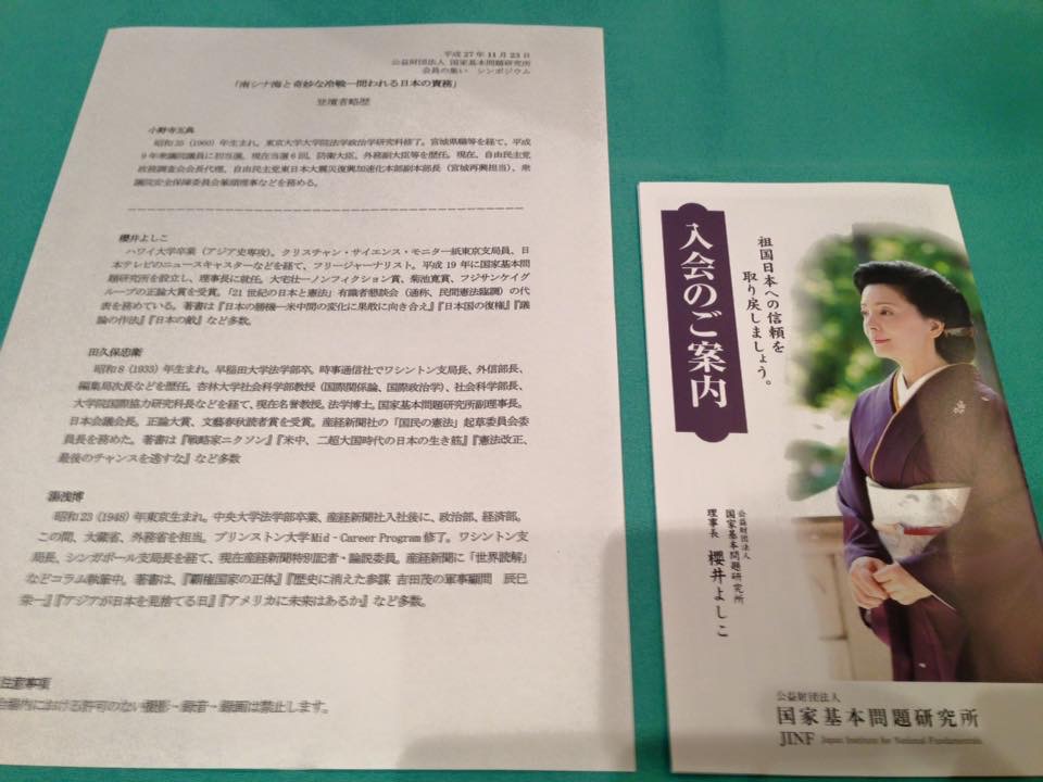 23日午後から、国家基本問題研究所のシンポジュームに参加させて戴いて勉強をさせて戴きました。