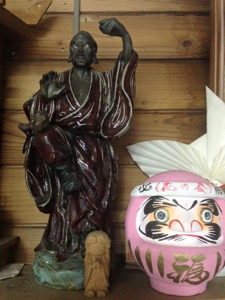 昨年はデカイ達磨さんでしたが、今年は、小さめで金色ですね。 うちには沢山の達磨さんがいます。これは、少林寺拳法の達磨さんですね。 ご存知喝達磨、葉乗り達磨、八風吹けども、動ぜず。天辺の月。 私の好きな達磨さんですね。 本年も七転び八起きで頑張ります。御愛顧、叱咤激励をお願い申し上げます。