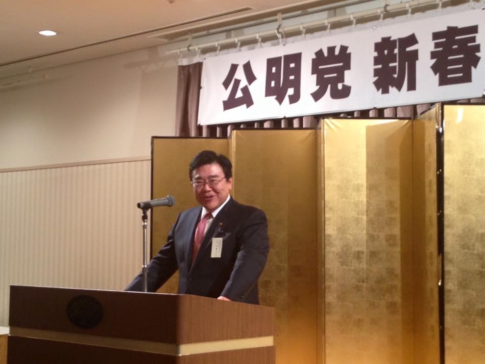 来賓で阿部 守一知事も挨拶し激励と感謝を申し上げてました。 後藤県連会長も挨拶で連立の成果と今後の展開についてお話しがありました。 公明党の山口代表も挨拶をし軽減税率安保法制など解りやすく話をして下さいました。 その前後で私も国会議員さん、阿部知事とも話をさせて戴き、懸案事項などご意見を拝聴させて戴きました。