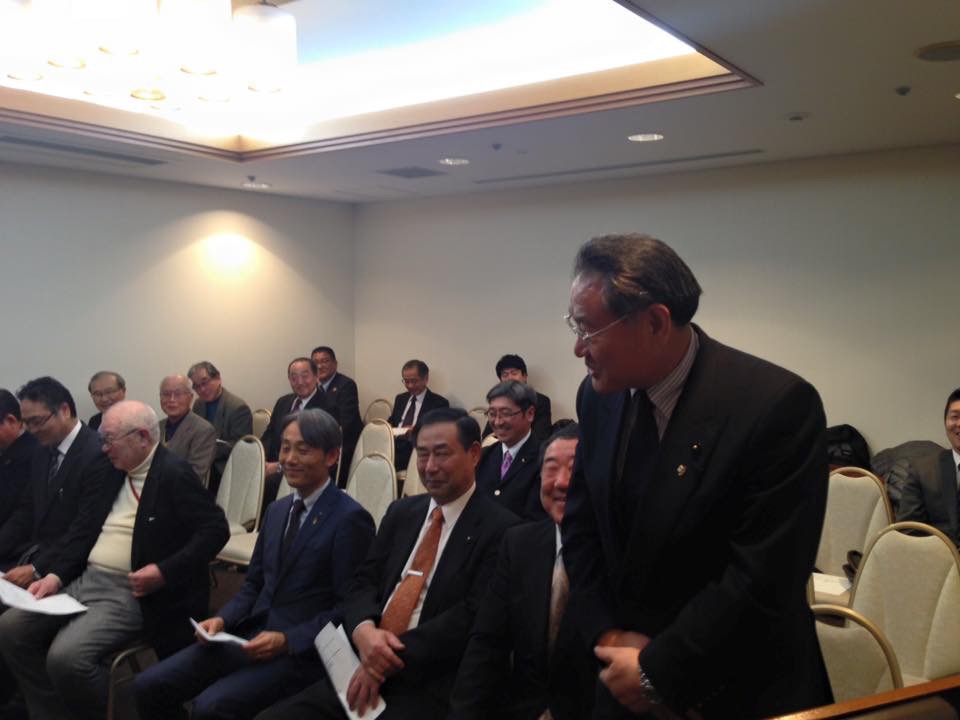体協副会長、スポーツ議連の会長の萩原 清県議会議員が挨拶をして激励致しました。 高見澤監督は、大会記録更新を目指して頑張ると強く挨拶致しました。 私からも、楽しんで頑張って下さいと激励致しました。