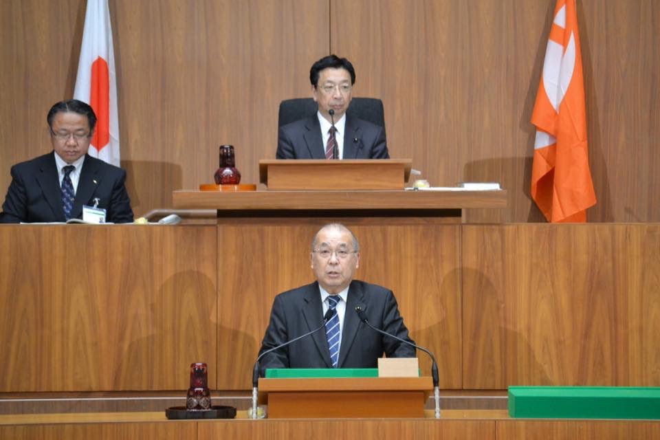 議長に向山議員が立候補しました。副議長には下澤議員が立候補致しました。 午後から選挙が行われ、議長推薦で向山議長が誕生致しました。 向山議長が席に着き、副議長選挙が行われて、議長推薦により、下澤議員が副議長に就任致しました。 二人で挨拶まわりをしていました。