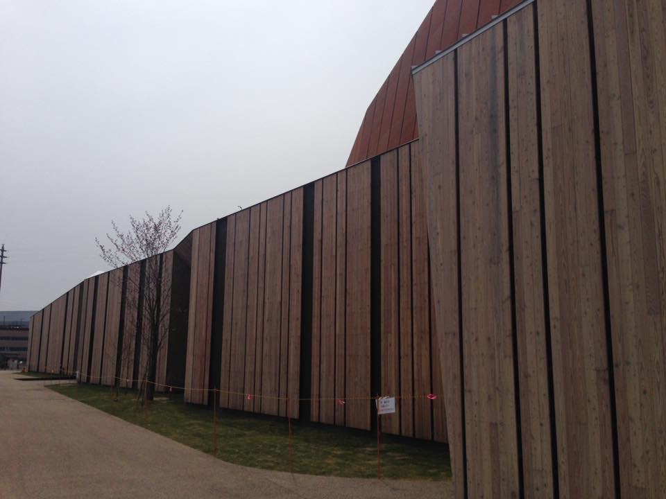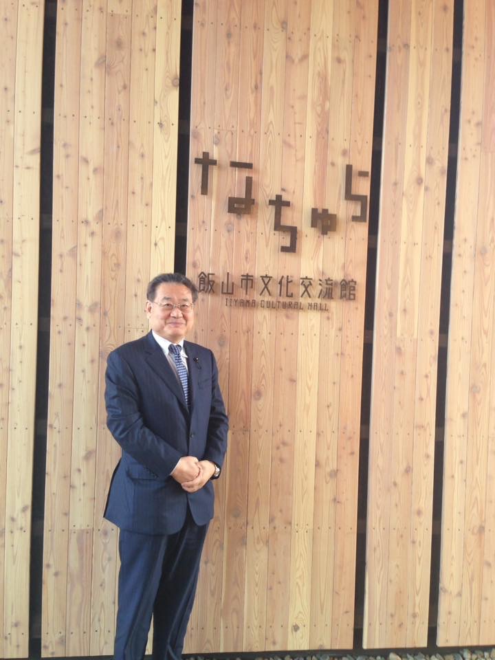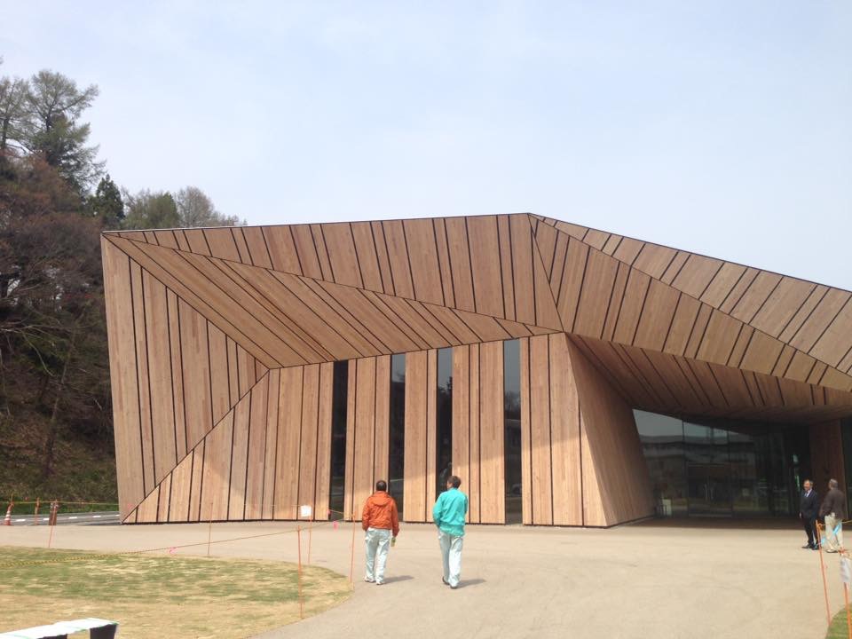 いや〜、素晴らしい文化交流館でした。 外壁がほとんど県産材をふんだんに使用しています。又、鉄板をサビを出して良い色を出しています。 又、中の部屋にも、天井壁など木を使っていました。素晴らしい設計と施工でしたね。 これからも県産材をふんだんに使用する公共施設を作って行きたいと考えています。