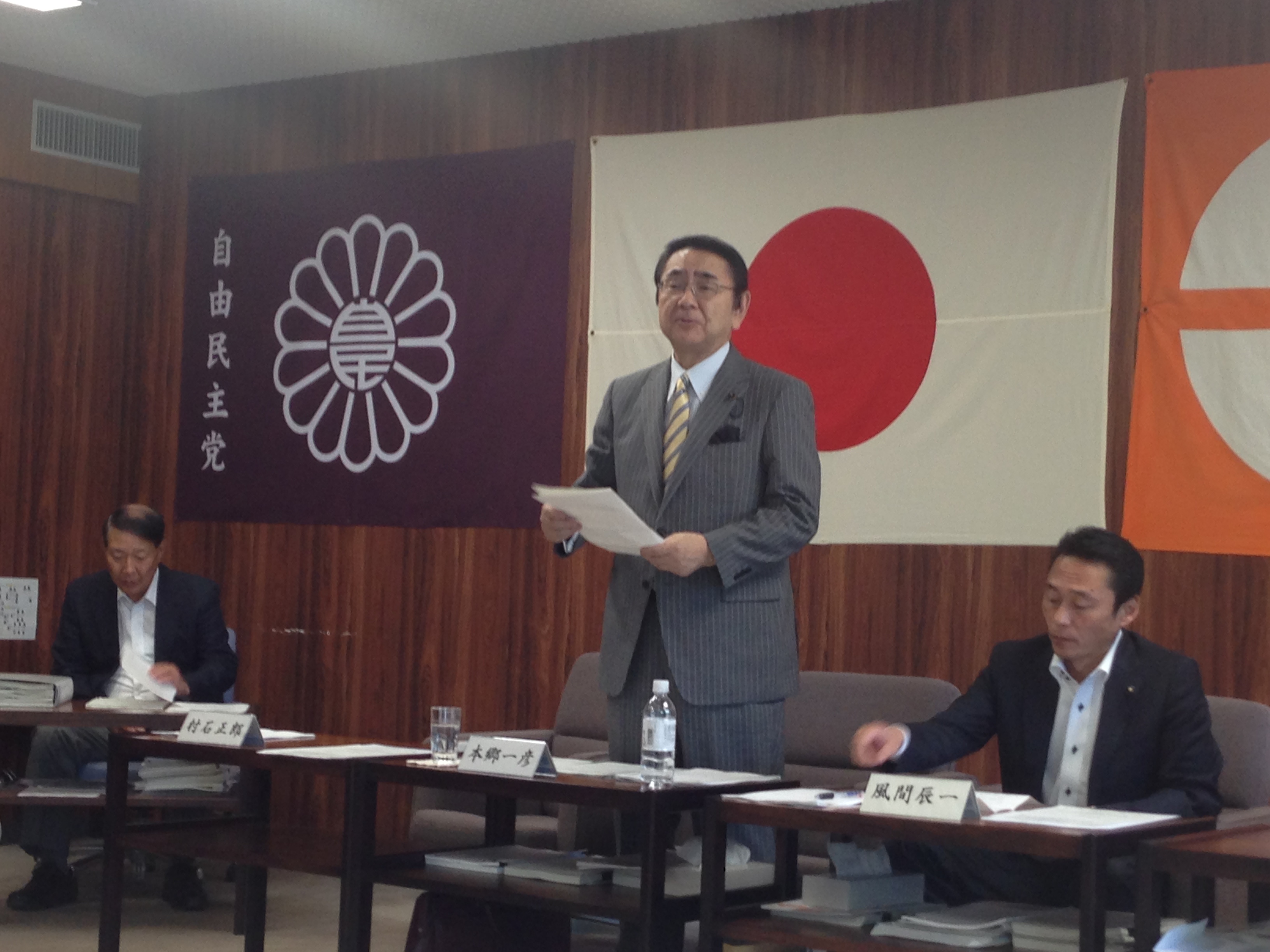本郷団長より挨拶があり会は進行致しました。知事との代表者会議の内容、6月県議会の打ち合わせ、28年度の政府への予算要求要望など協議させて戴きました。 4日5日と全国植樹祭の予定など確認させて戴きました。 今後の展開、一般質問などの打ち合わせなどさせて戴きました。今回は一般質問致しません。