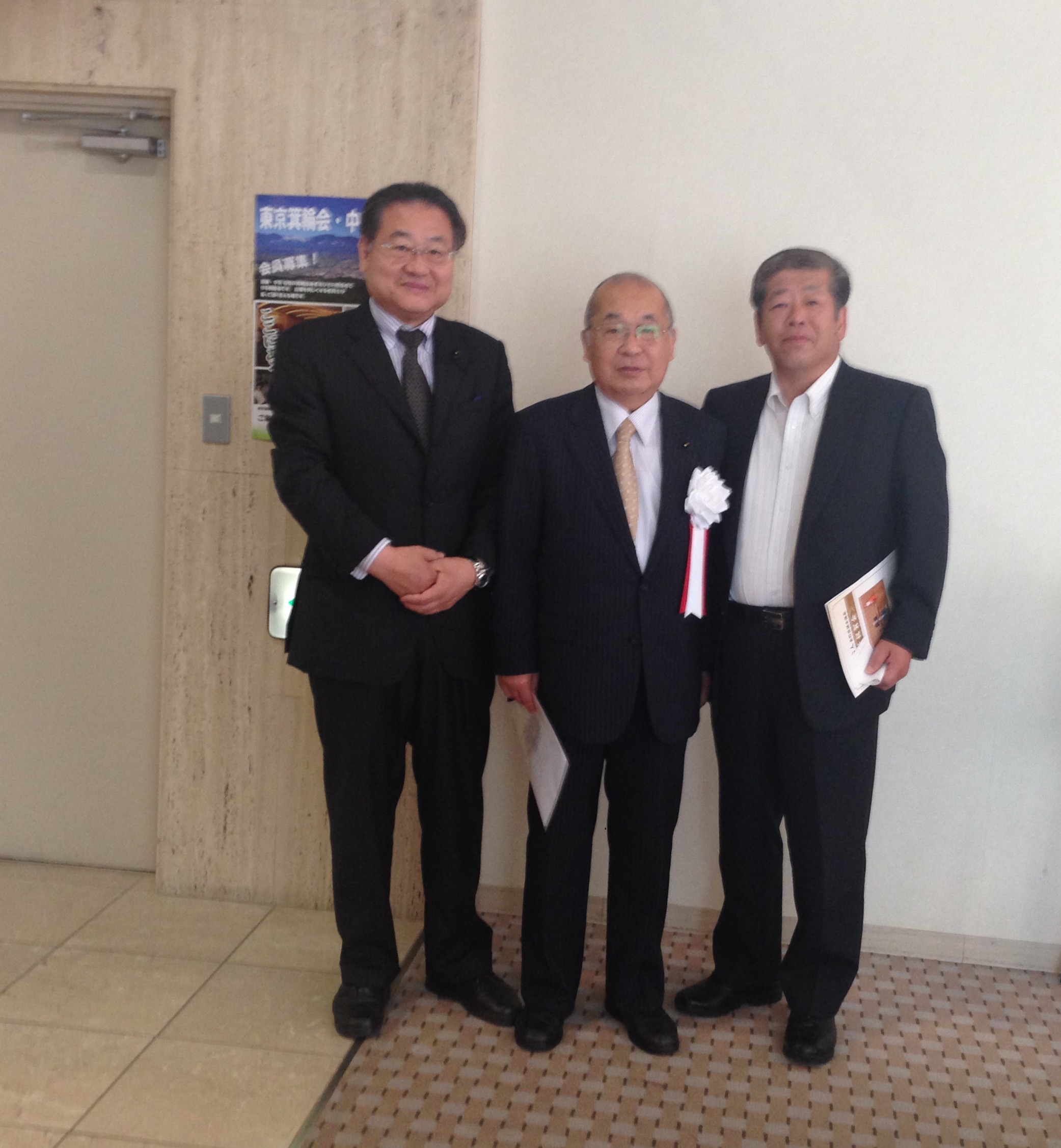 阿部 守一知事も親しく祝辞を述べました。 秘書仲間の飯島勲内閣参与も駆けつけて挨拶をして下さいました。 普段着の県政の持論を話しながら、御礼を申し上げました。