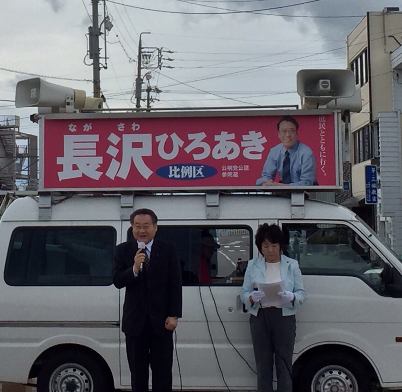 25日は、長野市より帰ってきまして11時公明党の街頭演説に同行させて戴きました。