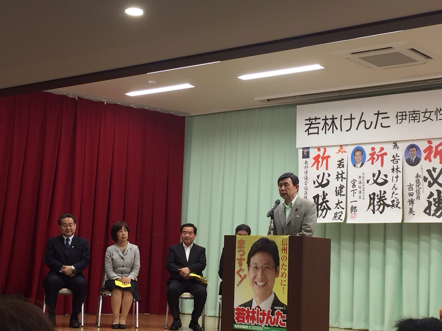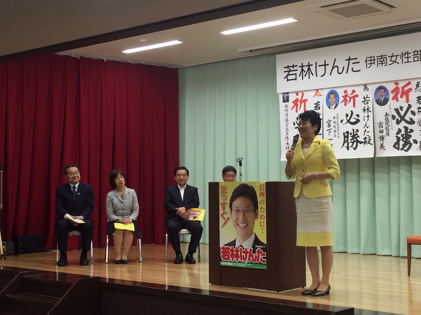 私も激励と今出来る選挙運動を紹介させて戴きました。 前女性活躍担当大臣有村治子先生が激励に参上して戴きました。 最後に吉田 博美参議院議員さんが泣かせる話を聞いて感激致しました。 最後に健太カラーの黄色い紙を使って激励致しました。