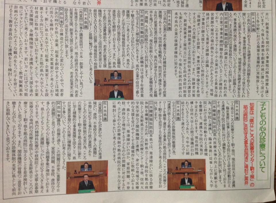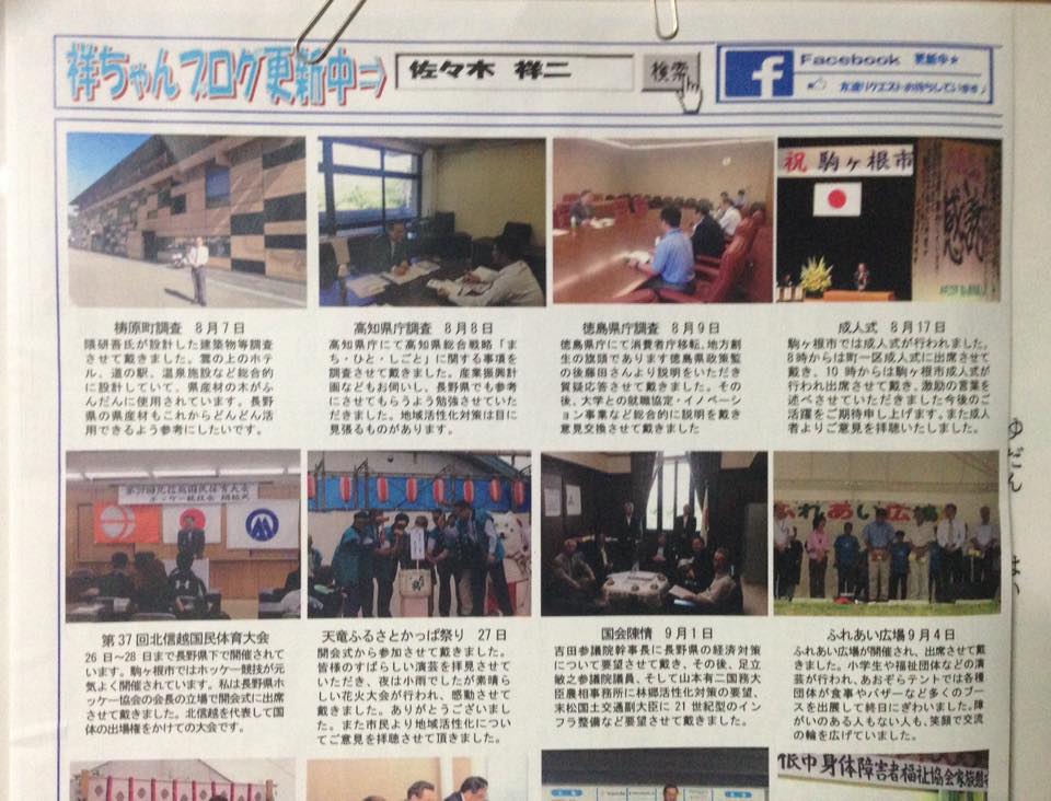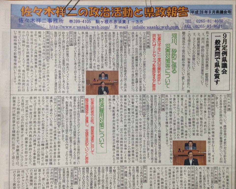 9月県議会も議了し佐々木 祥二県政報告紙が出来ました。