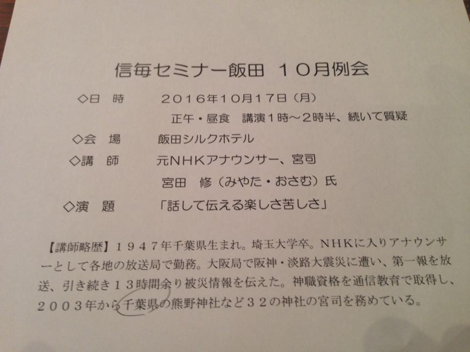 17日は、午後から飯田市にて、信毎セミナーがあり出席させて戴き勉強させて戴きました。