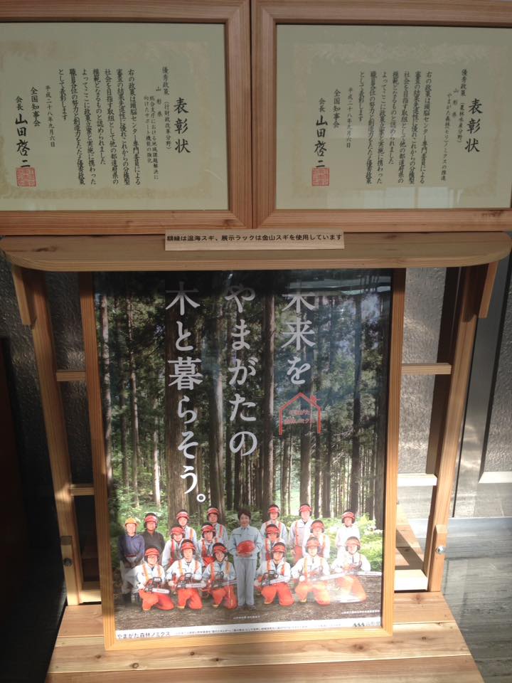 ![]() 県庁では、吉村知事さんの展示があり一緒に撮影。 ![]() 林業製品の話など聞かせて頂きましたよ。 ![]() 未来を山形の木と暮らしましょう。がキャッチでした。 ![]()