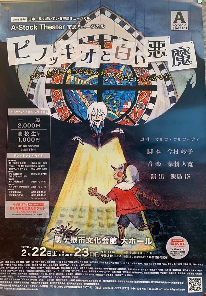 今日も積極一貫、明るく楽しく元気良く絶好調で顔晴リましょう。 昨日23日は天皇陛下誕生日(天長節)でしたね。 ![]() 日本国の弥栄と御皇室の弥栄、長野県の平安駒ヶ根市の安全安心五穀豊穰をご祈念申し上げました。 11時孫と一緒に市民ミュージカル「ピノキオと白い悪魔」を見せて戴きました。 ![]() 素晴らしいミュージカルでしたね。子供達も良く練習されました。 ![]() これからも楽しみにしています。