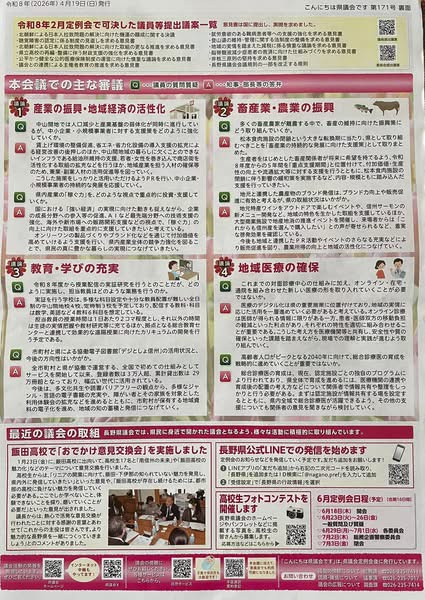 22日今日も輝く県政の灯火を頼りに,希望の光を信じて進んでいきましょう。 昨日21日午前中県庁にて打ち合わせして,午後から駒ヶ根市に帰って来ました。 今朝も中央アルプス駒ヶ岳は綺麗に光っています。 長野県議会も、「こんにちは県議です」を発行しています。初委員会も始まりスタートダッシュしていきます。 ![]() ![]() ![]()