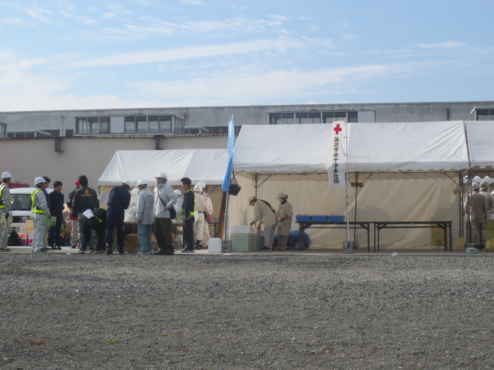 午前8時40分ころ、諏訪市に震度6の地震あり市内で死亡者・倒壊など多発した火災も発生との連絡あり、直ちに災害対策本部設置。 長野県も直ちに、知事先頭に災害対策本部設置し対応に走る。 私達、危機管理建設委員会も正副委員長中心に対応を見守る。 情報の伝達、被害の把握、交通規制、物資の運搬、避難所設置、救護、炊き出し、ライフラインの復旧など訓練を実施した。 赤十字の皆さんの炊き出し、また区民の皆さんの避難状況など視察させて戴きました。本番を思わせる、きびきび対応で緊迫感ありでした。「そなえよ常に、災害は忘れた頃にやってくる。」訓練訓練また訓練ですね。