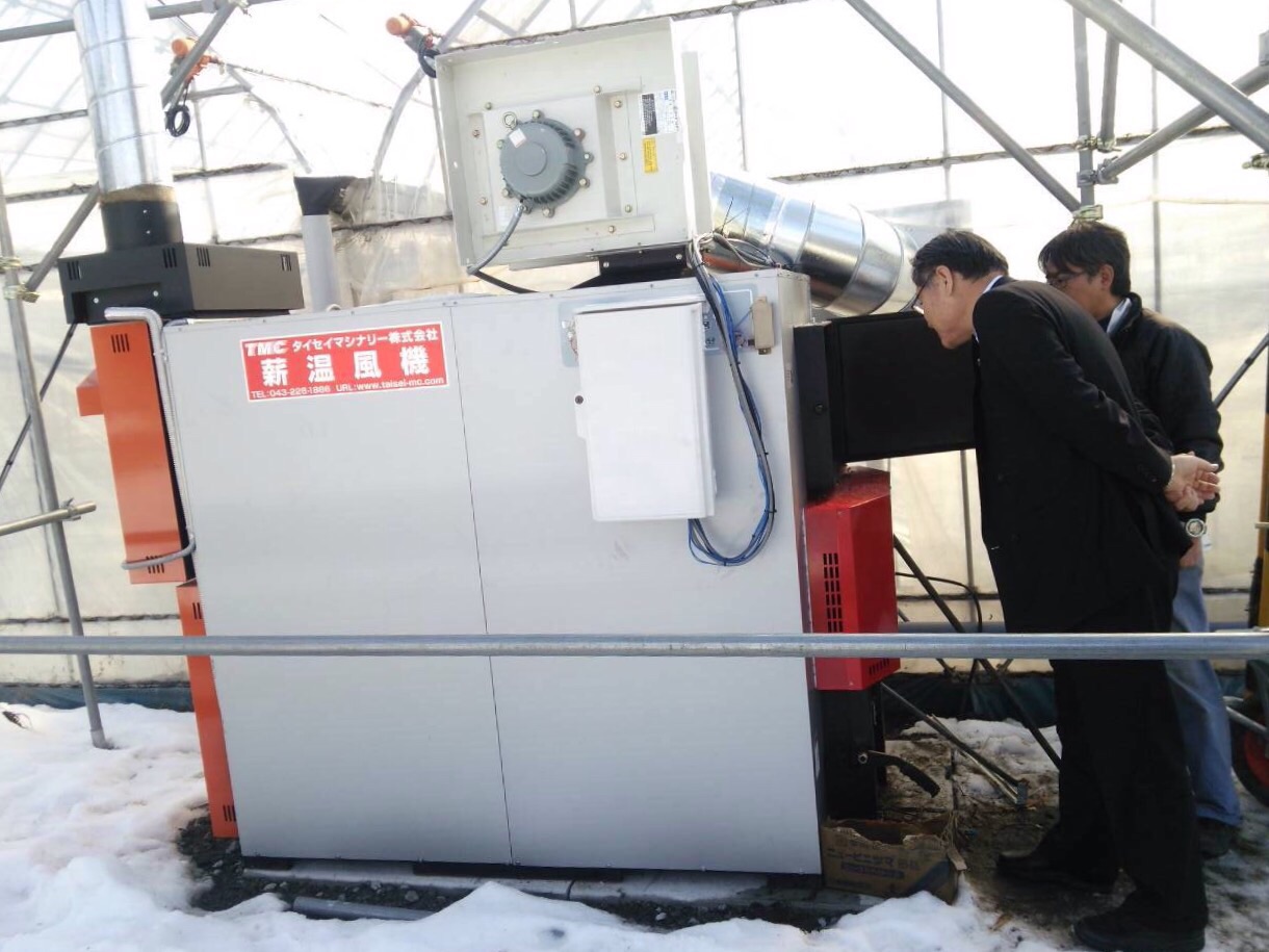 昨日松本市にあります、ハウス栽培の農家さんにバイオマスの温風機を調査研究させて戴きました。