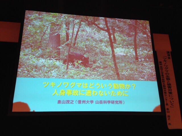 会長の挨拶の後、向山県議が来賓祝辞を述べました。 引き続き、泉山信州大学教授のツキノワグマのお話を拝聴させて戴きました。
