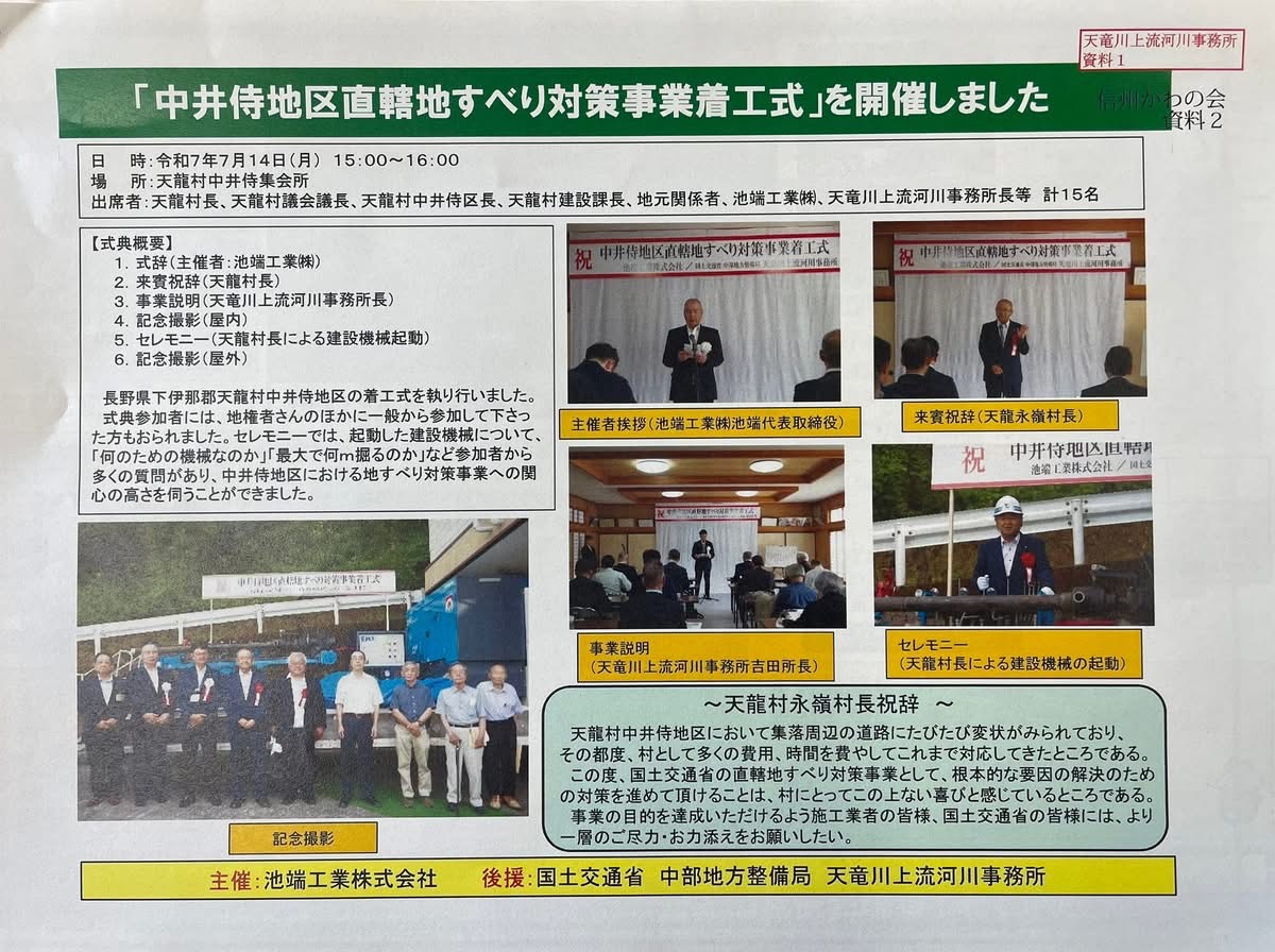 10日今日も天を敬し報恩感謝にて元気に張り切って働きます。 昨日9日は、長野県議会委員会審議でした。 その終了後に,先日信州川の会があり出席させて戴き勉強させて戴きました。 伊那谷は、天竜川上流河川事務所・天竜川ダム総合管理事務所が有り所長 さんより資料提供してくださいました。 今日も委員会審議です。 ![]() ![]() ![]() ![]() ![]()