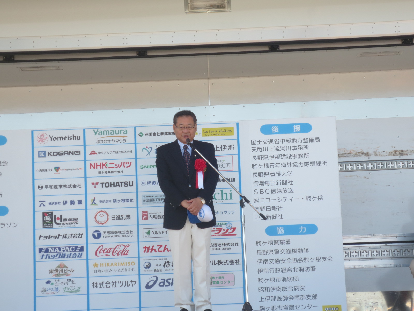 28日8時、第二回信州駒ヶ根ハーフマラソン大会開会式あり出席させて戴きました。