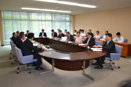風間議長より、今回の災害をかんがみ、知事からの要請もあり、本日と1日の2日間延期し、各派代表質問は、10月2日3日としたい旨お話がありました、協議に結果そのように決定致しました。 議長より、議事日程通知書が各議員に配布され、開議の日時は平成26年10月2日午前10時再開となりました。