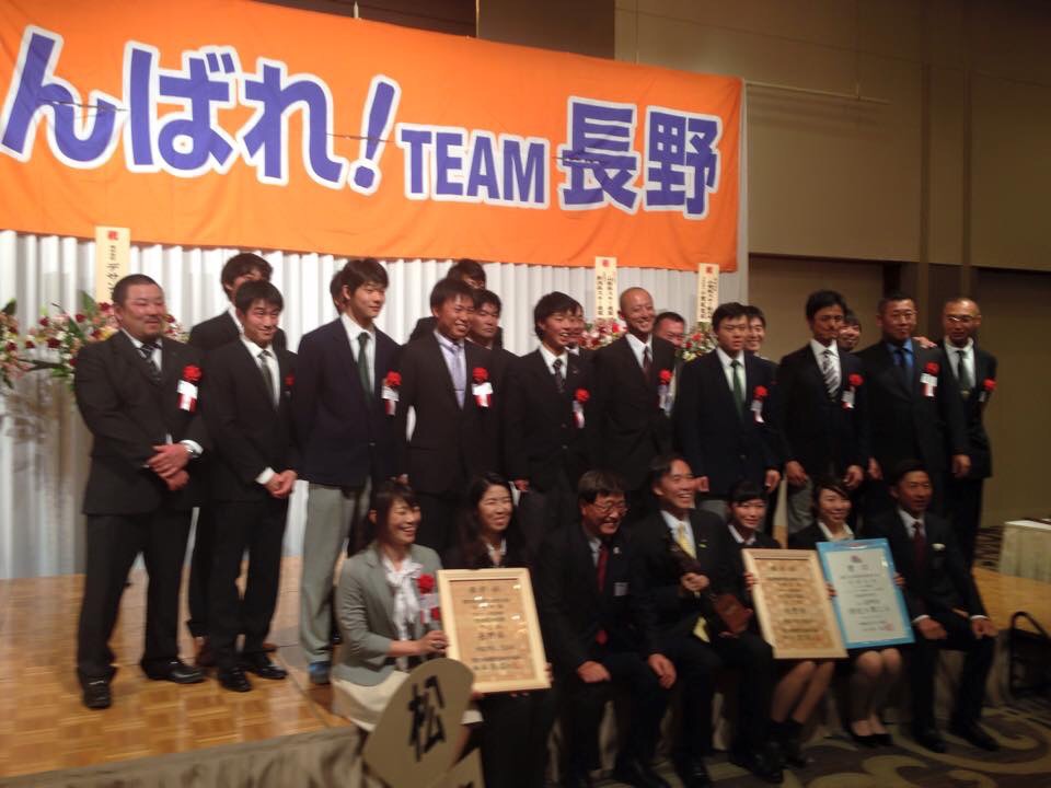 体育協会副会長&議員連盟会長の萩原 清県議が挨拶があり、群馬冬の国体で天皇杯皇后杯W受賞の祝勝会と懇談会の意義を述べました。 阿部知事も駆け付け激励をして戴きました。その後出場者との撮影会が始まり会は絶好調に盛り上がりました。