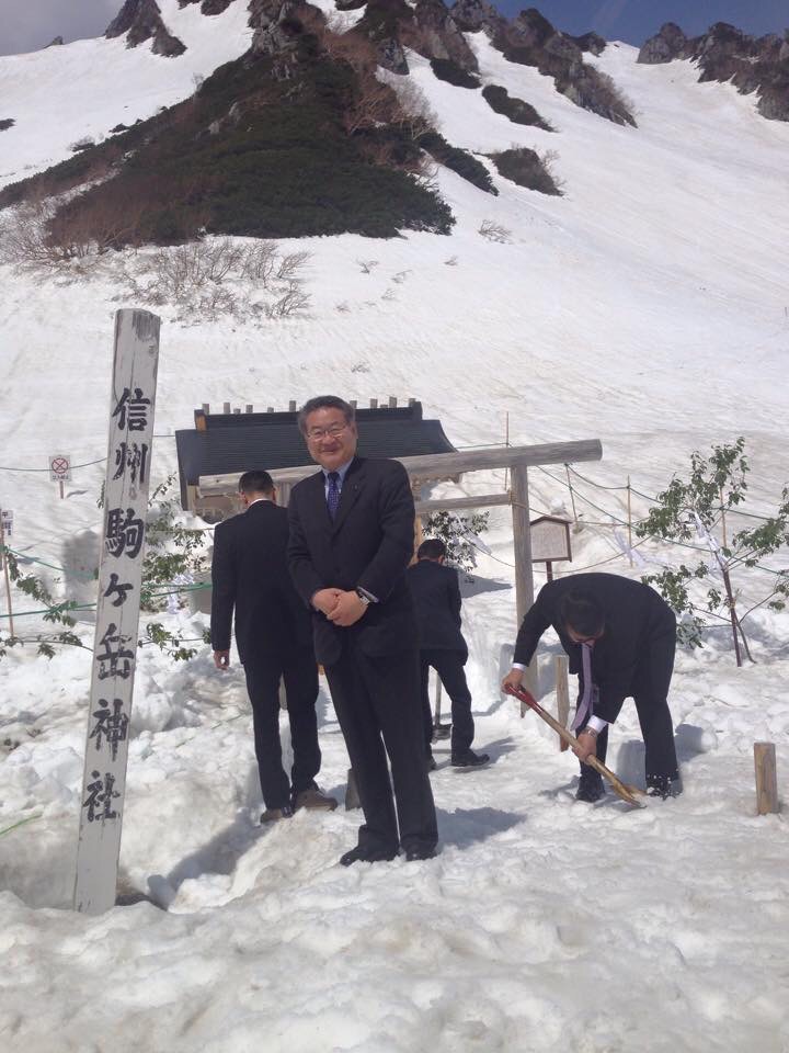 駒ヶ岳神社にて、白鳥宮司先導のもと安全祈願をし、祝詞奏上、お払いお清めをして、玉串奉奠をさせて戴きました。 その後、駒ヶ根アルプスホルン会のメンバーによります、演奏があり好天の下素晴らしい開山式が出来ました。 これから、いよいよ本格的な山シーズンです。安全第一で明るく楽しく元気良くいきたいものです。