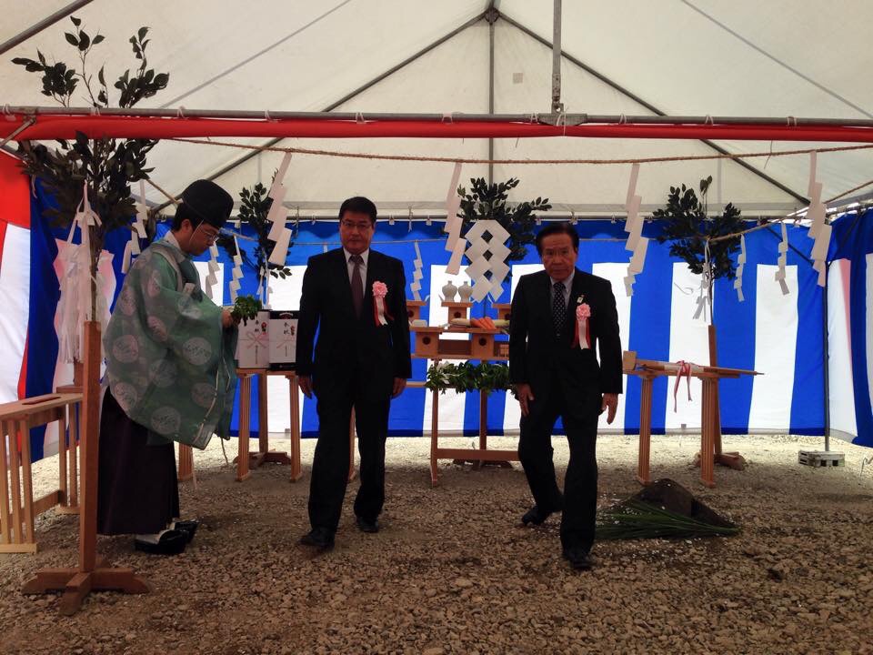 御子柴組合長の鍬入れの義、など白鳥神官が執り行われました。 玉串奉奠をさせて戴き最後に施工者の、ヤマウラ窪田JVが〆ました。 起工式では、御子柴組合長が挨拶をし、来賓祝辞は、私と杉本市長さんがお祝いを述べました。