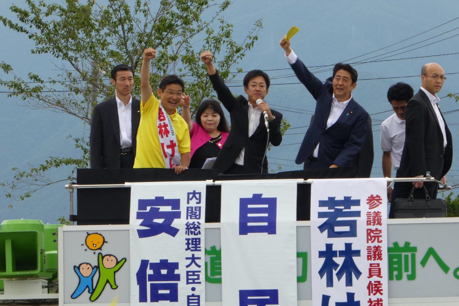 26日午後四時、安曇野市スイス村に、安倍内閣総理大臣が、若林健太参議院議員の応援に駆けつけて戴きました。