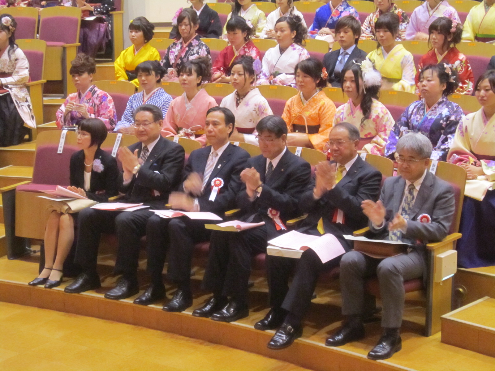 卒業証書82名・学位記9名に授与されました。 続いて阿保学長が格式高い式辞を述べました。 その後、阿部知事がお祝いの言葉を述べ3つの事をお願いしていました。万事塞翁が馬、夢と希望を、そして笑顔を忘れない。この3つです。 私は来賓祝辞を副議長の立場で述べさせて戴きました。 その後卒業生答辞・修了生答辞があり、学歌斉唱をして閉会となりました。素晴らしい卒業式でした。 おまけ