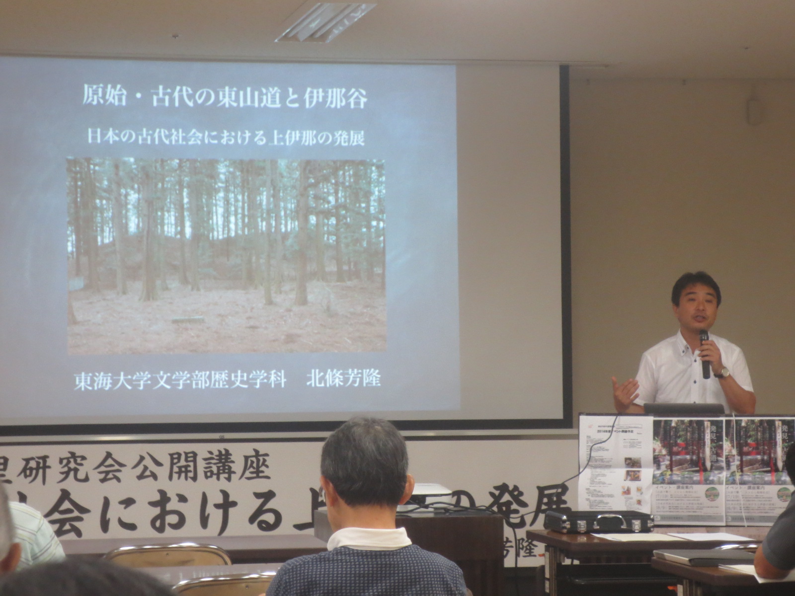 今回の講師は東海大学文学部歴史学科 北條 芳隆教授で「原始・古代の東山道と伊那谷」サブが、日本の古代社会における上伊那の発展を考えるです。 北條先生も上伊那で生まれ実家も上伊那と言う事で、良く勉強研究もされ素晴しいきずきを与えてくださいました。 この古代東山道は日本の大動脈で政治経済文化の重要な道でもあり、信濃路は険しい道でもあり天竜川を利用しての観点からこの地域伊那谷は重要な地域であったなど、私達に興味の有る話でした。 先生には今後とものご指導をお願い致します。懇親会・二次会も盛あがりましたよ。