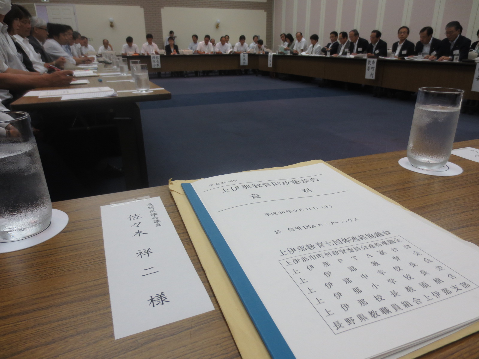 11日午後3時より、伊那市におきまして、上伊那教育七団体と県議との上伊那教育財政懇談会を午後5時30分までさせて戴きました。