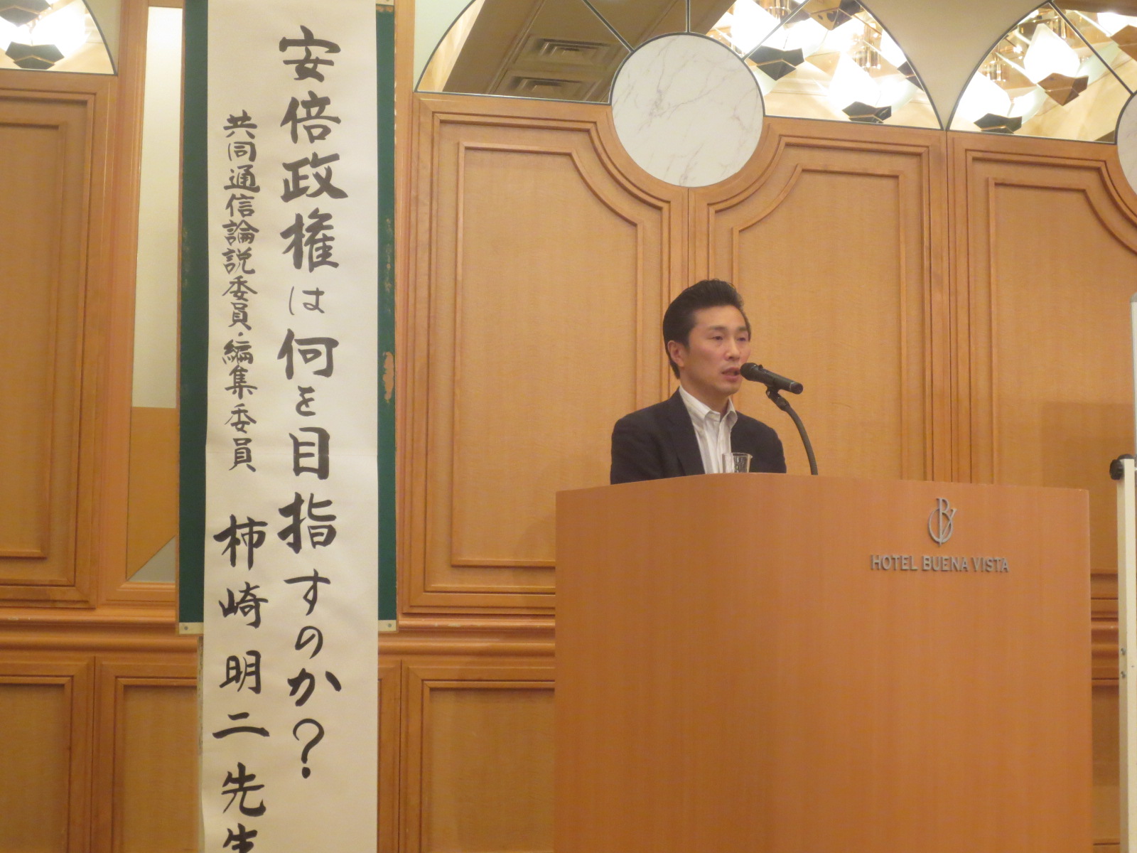 講師は、共同通信社論説委員の柿崎明二氏です。講演内容は「安倍政権は今後何を目指すのか?」でありました。 今度の内閣改造、自民党役員人事、などからどのような事をする内閣か?来年の衆参同時選挙はあるのか?安倍イズムはどうなるのか?戦後レジュームは?集団的自衛権は?など興味のある話ばかりでした。 アベノミクッスはどのようになるのか?金融政策、民間賃金のUP、女性の登用、人口問題、から野党の再編から政権交代などあるのか? そして戦争に向かうのか?等々貴重なご意見を伺うことが出来ました。面白く拝聴できました。 長野県としても地域創生が急務であり、地域の知恵と力と金が必要になります。これから益々地域間競争ですね、頑張らねば>