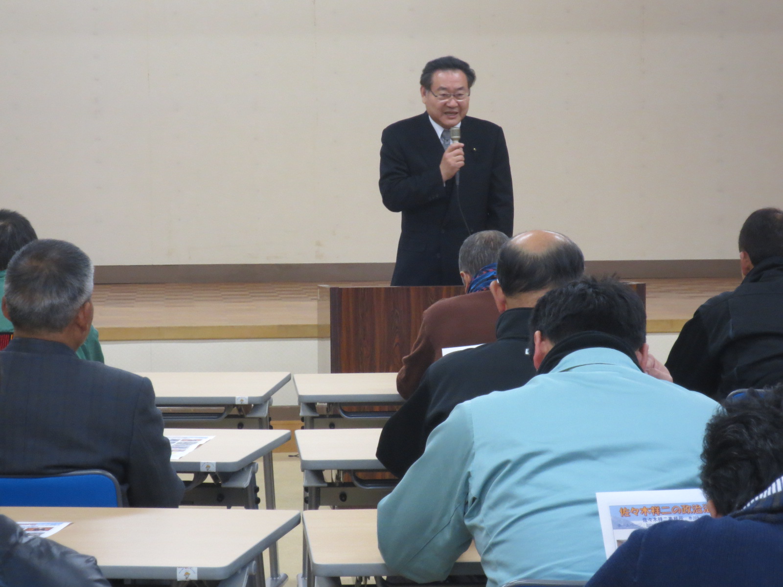 ![]() 長野県の一年を漢字であらわせば災害の「災」と言えるほど災害の多い年でした、この町4区の防災体制は長野県一番ですので参考にさせて戴きたい旨話しました。素晴しい取り組みをしている先進地です。 ![]() 次に佐々木祥二の山中八策を語り、皆さんで作り上げる政策ですのでご意見をどんどんどしどし申してください、私の仕事は、皆様方の考え政策を鏡の如く県政に反映させるのが使命ですと話しました。 ![]() 最後に地域の課題、駒ヶ根市の10ヶ年計画構想、伊那谷地域活性化基本構想なども話をさせて戴きました。 質疑応答では、経済対策、地方創生、医療認知症対策など活発なご意見が出されました。 今後県政で反映させて戴きます。 吹雪の中足を運んで出席されました方々に心より感謝申し上げます。