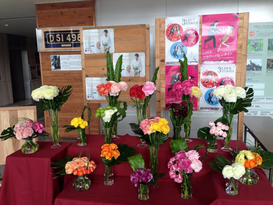 県庁のロビーにフラワーバレンタインの展示がありました。