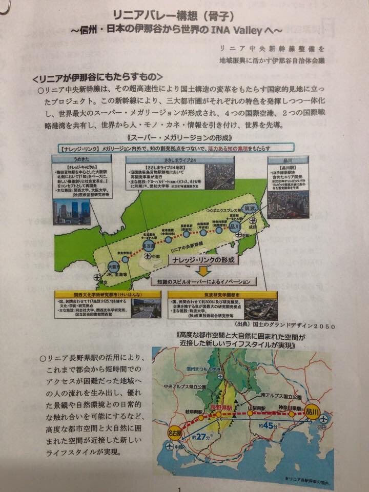 いろいろな処で、地方創生・リニアバレー構想を話をさせて戴いています。
