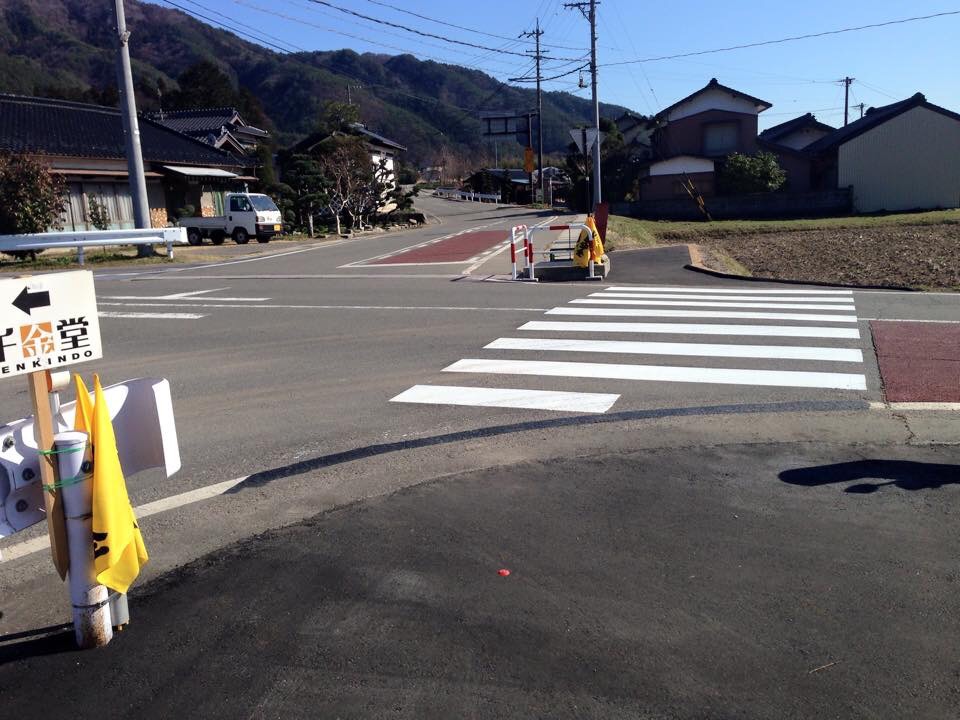駒ヶ根市中沢区吉瀬自治組合の県道伊那生田飯田線と市道との交差点に横断歩道を設置されました。