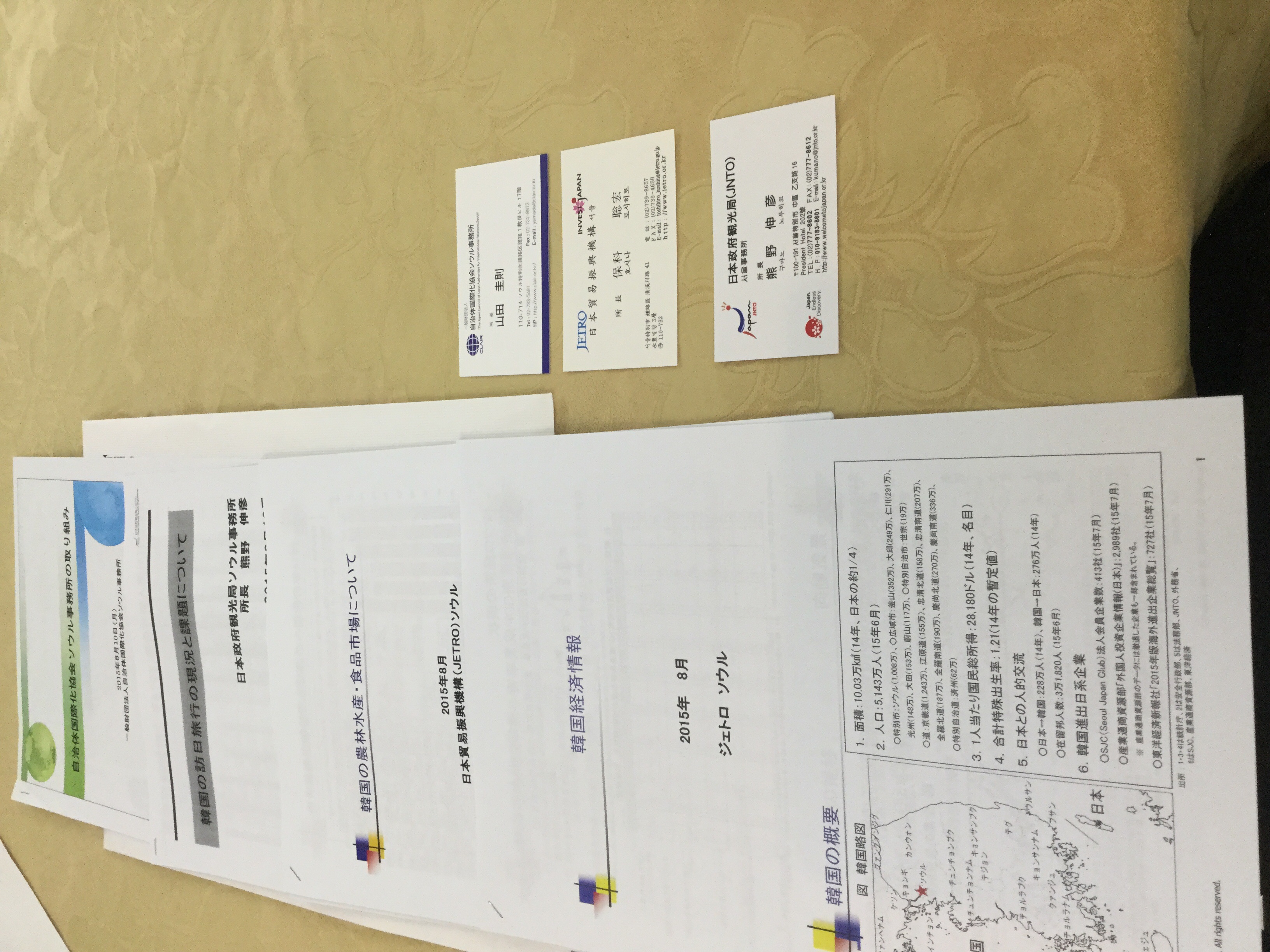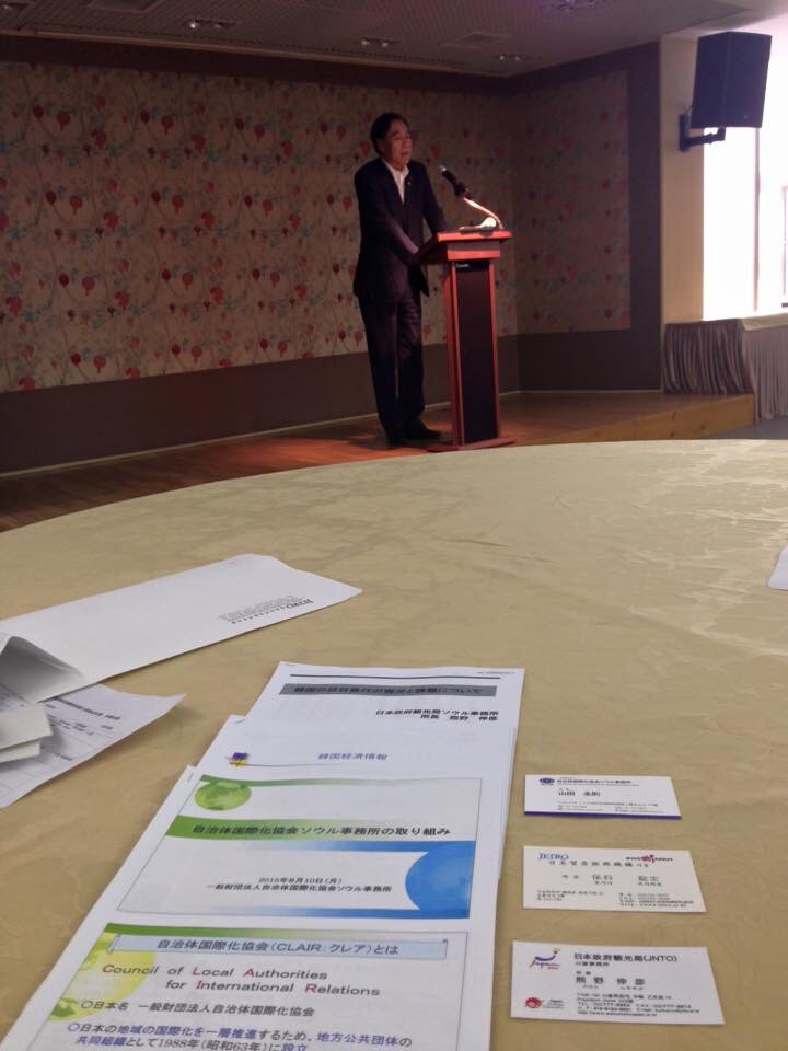 その後昼食会を開いて戴き庁舎なども案内して下さいました。 その後韓国大手旅行社訪問をさせて戴き久しく懇談をしました。 その後、政府機関の三所長より韓国情勢状況など勉強させて戴きました。