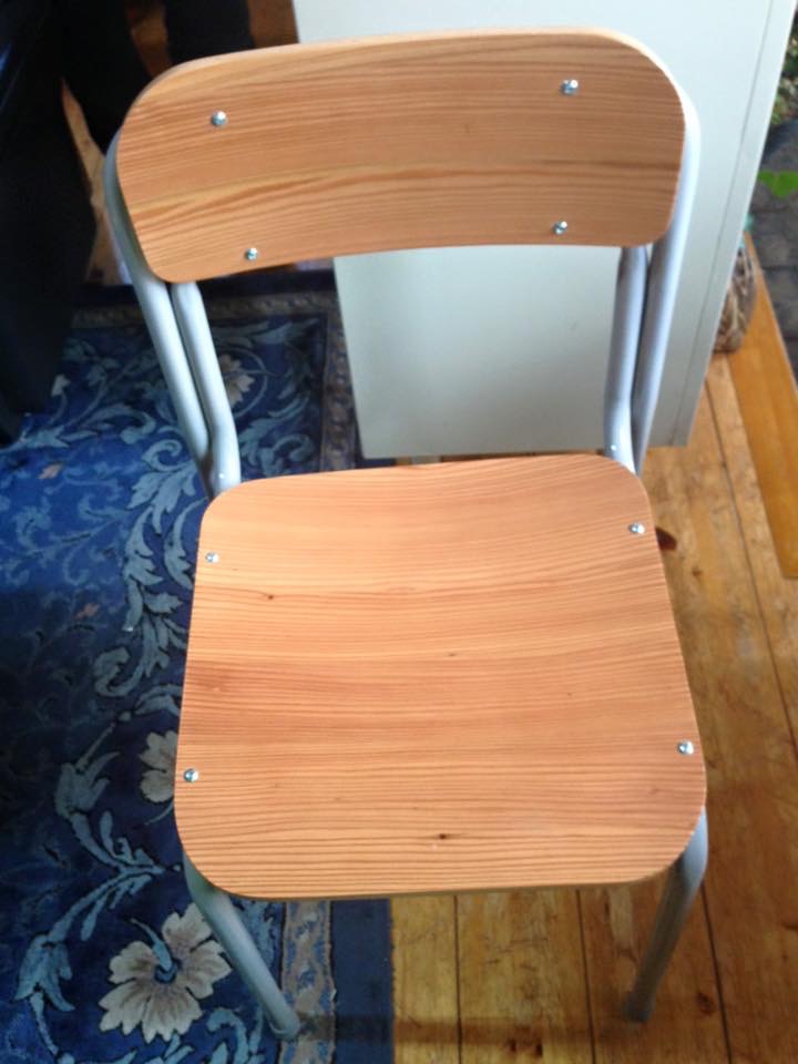 腰掛け椅子ですが、軽くて強くて、唐松の木目が綺麗でカーブも良いですね。 机も軽くて強くて、木目良しでしたよ。 伊那谷の唐松ですが、長野県の子供達に愛されると良いですね。