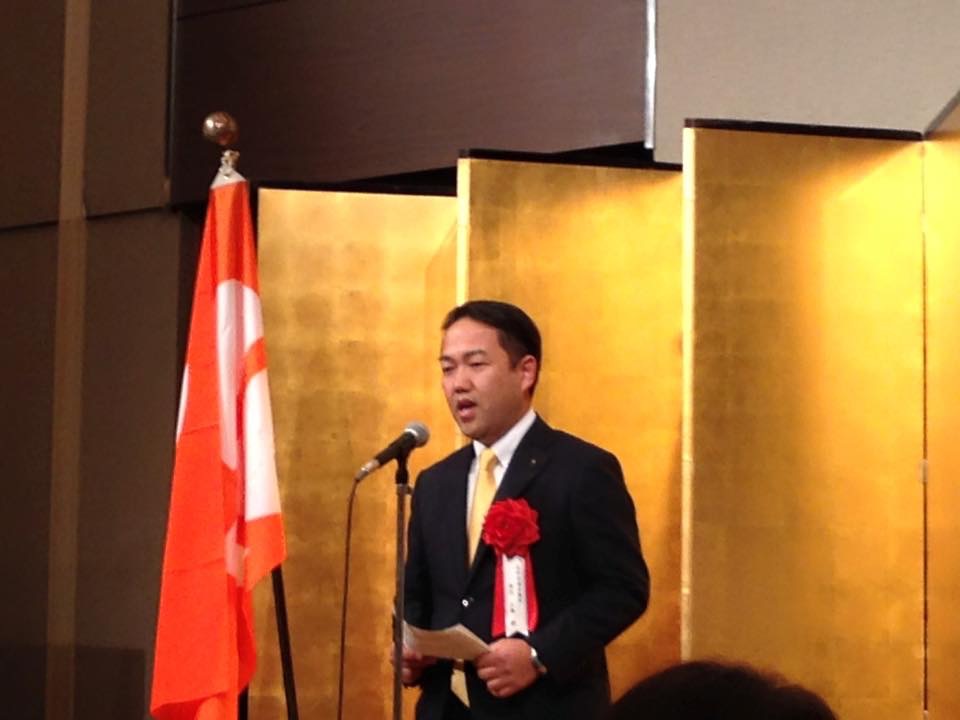 その後の祝賀会では阿部知事が御嶽山災害など後藤本部長に感謝申し上げ日頃のご挨拶を申し上げました。 西澤議長からも感謝申し上げ、乾杯条例可決の話をして、早速地酒で乾杯を致しました。よ〜。 後藤1等陸佐第31代自衛隊長野地方協力本部長が五郎丸の格好をして3ツのお願いをして祝賀会の開会式を終了致しました。 私も、長野県議会安全保障議員連盟の副会長の立場で出席させて戴きました。 次の70周年に向け頑張って下さい。ご期待申し上げます。