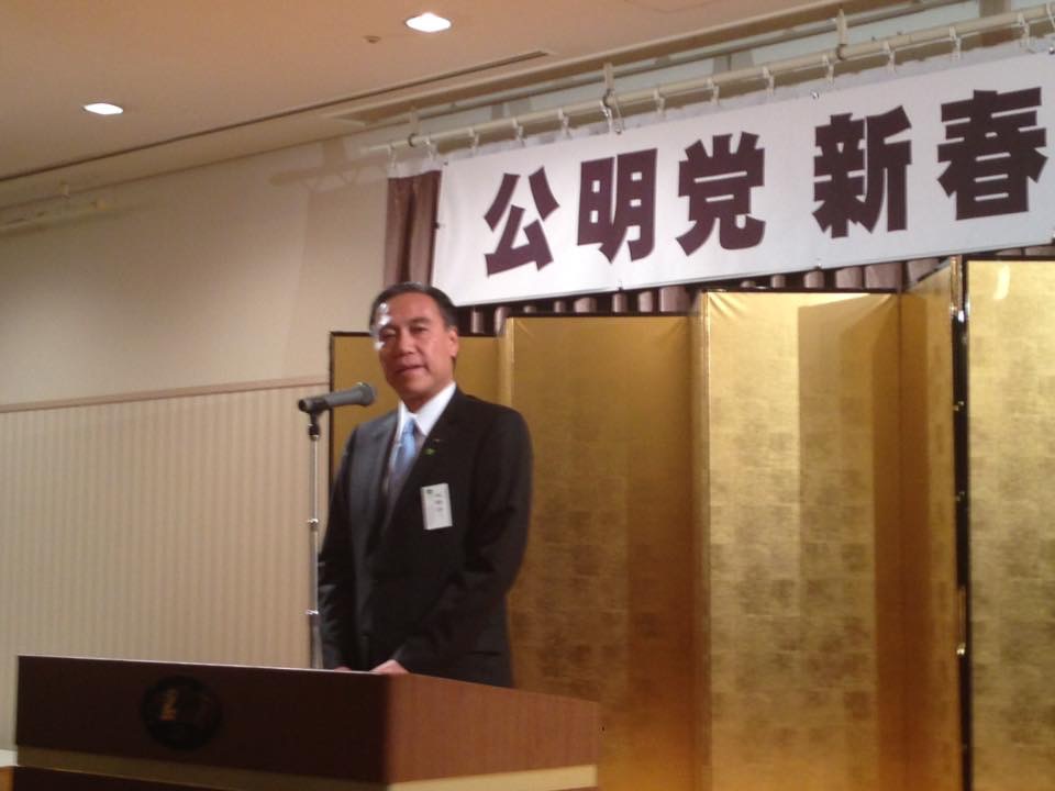 来賓で阿部 守一知事も挨拶し激励と感謝を申し上げてました。 後藤県連会長も挨拶で連立の成果と今後の展開についてお話しがありました。 公明党の山口代表も挨拶をし軽減税率安保法制など解りやすく話をして下さいました。 その前後で私も国会議員さん、阿部知事とも話をさせて戴き、懸案事項などご意見を拝聴させて戴きました。