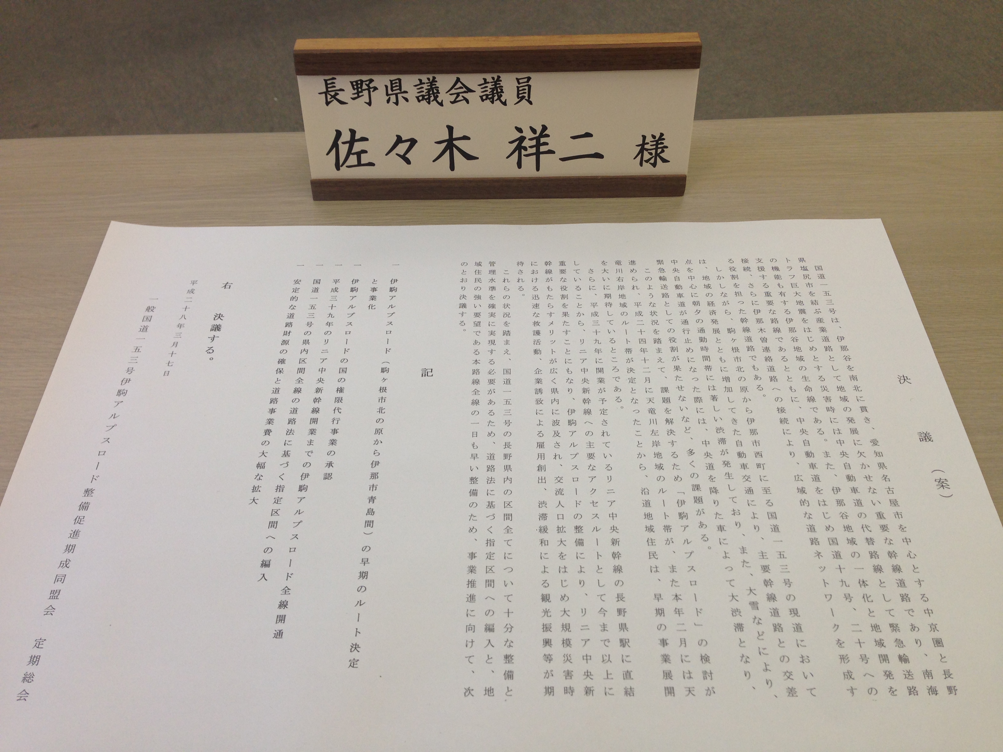17日午後4時より、一般国道153号線「伊駒アルプスロード」整備促進期成同盟会の設立総会が有り出席させて戴きました。