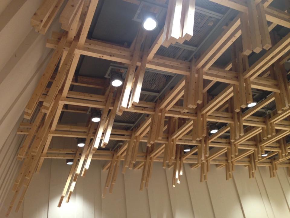 いや〜、素晴らしい文化交流館でした。 外壁がほとんど県産材をふんだんに使用しています。又、鉄板をサビを出して良い色を出しています。 又、中の部屋にも、天井壁など木を使っていました。素晴らしい設計と施工でしたね。 これからも県産材をふんだんに使用する公共施設を作って行きたいと考えています。