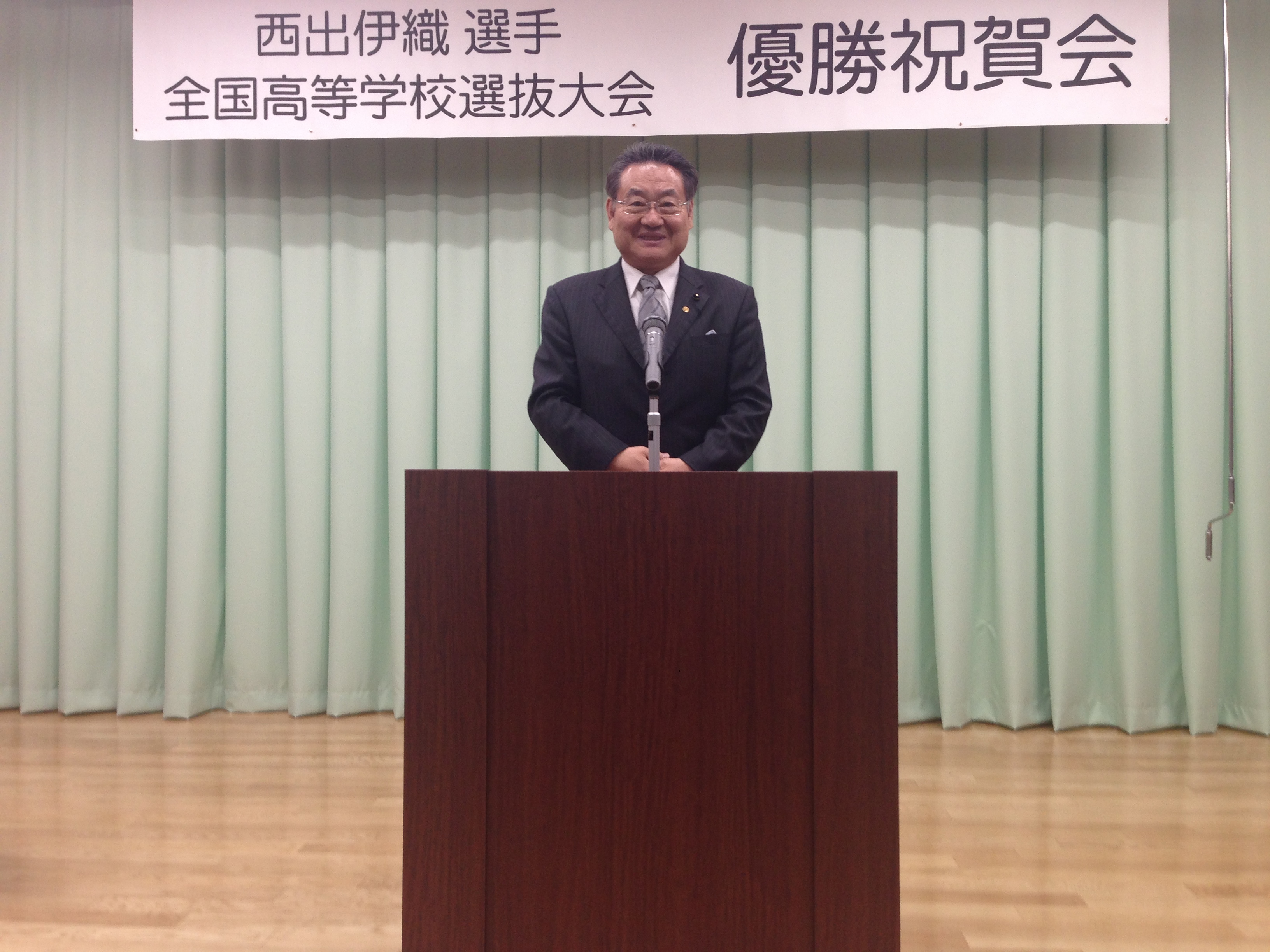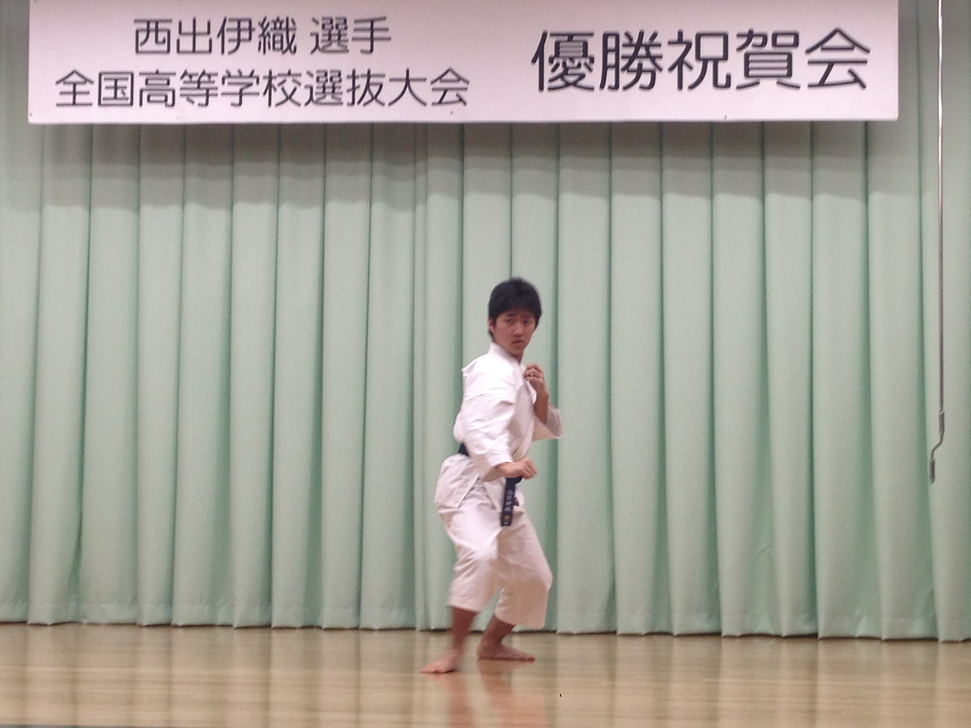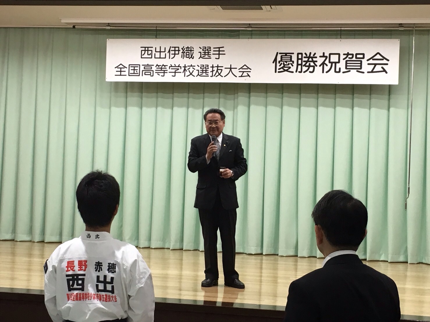 土曜日、少林寺拳法全国高校選抜大会において、全国優勝した、西出伊織選手の優勝祝賀会があり私も出席させて戴きました。