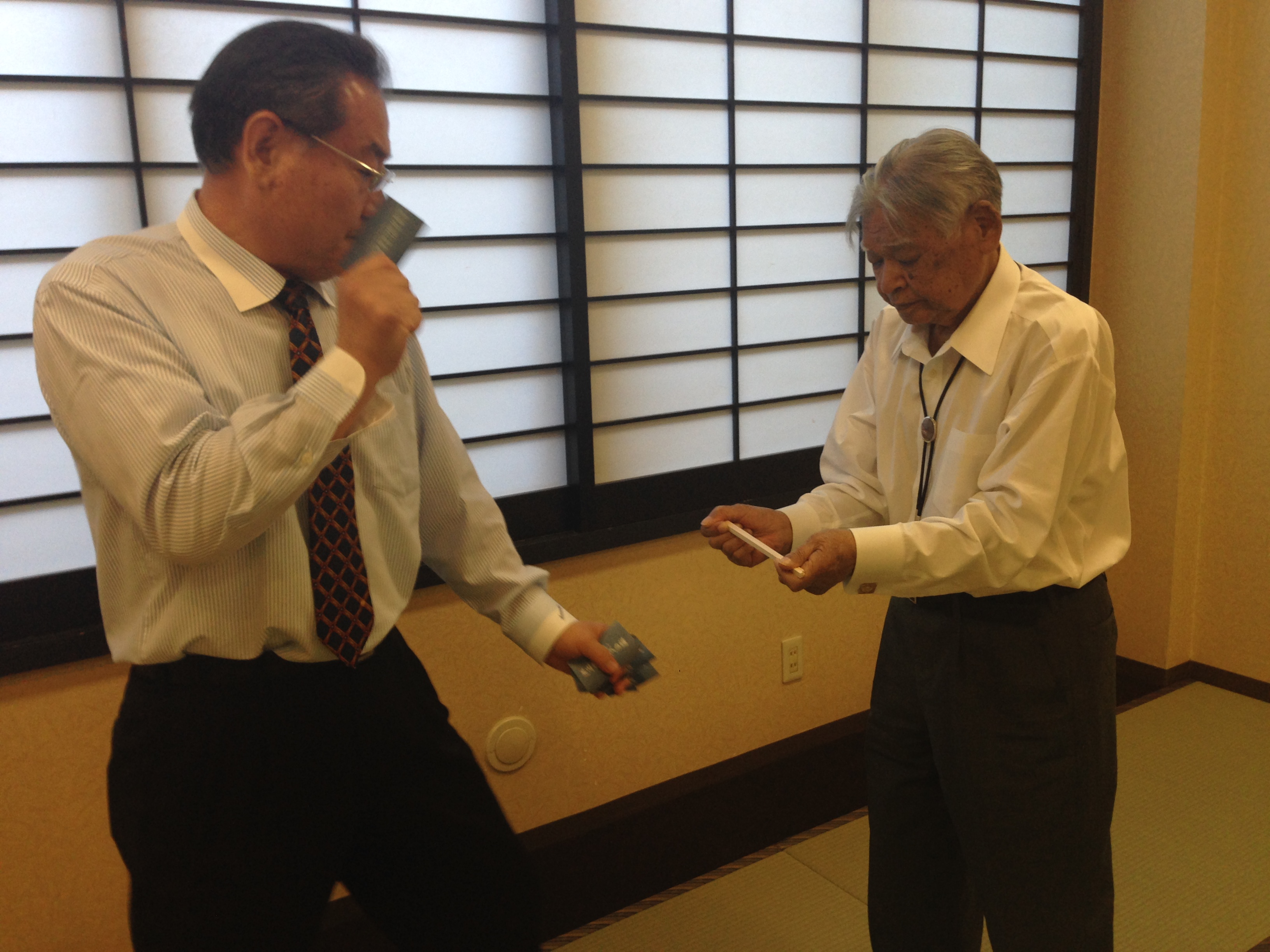 理事会終了後、木箸切りをさせて戴きました。これは紙刀にて木箸を切るのです。 これは全てのスポーツに適用でき、氣を充実させて、氣を発する方法など大変役に立ちます。 私も荒川理事長の前で規程本数を切りましたので、指導者としての認証を戴きました。 これから全国に向けて普及拡大をして行きます。ご興味のある方は是非ご連絡下さい。これからですよ